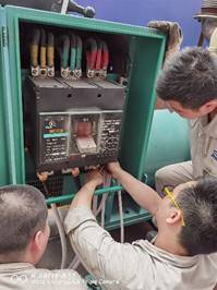 然而,我們能等,客戶不能等,8月因限電以來,部分項目已出現(xiàn)了拖期現(xiàn)象。面對繁重的生產(chǎn)任務(wù),裝備公司各級領(lǐng)導(dǎo)可謂焦急萬分,經(jīng)研究最終決定租賃發(fā)電機保生產(chǎn)。8月19日,緊急聯(lián)系的兩臺發(fā)電機順利到貨,設(shè)備管理室人員立即開展緊張調(diào)試工作,解燃眉之急。當(dāng)天氣溫高達(dá)43℃,要完成接線,設(shè)備管理室人員需先斷開市政電源,在沒有空調(diào)風(fēng)扇、封閉的設(shè)備操作間內(nèi)頂著高溫調(diào)試。在非常人能忍受的高溫之下,他們從19日早上一直工作到20日凌晨,終于確保了20日按時恢復(fù)生產(chǎn)供電,生產(chǎn)系統(tǒng)正式復(fù)工復(fù)產(chǎn)。